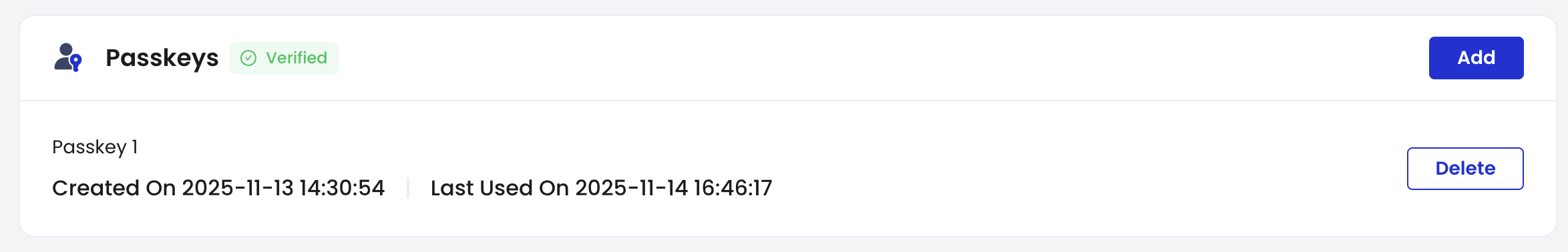 您可以查看新增通行密钥的详情,包括其创建时间和最后使用时间。
